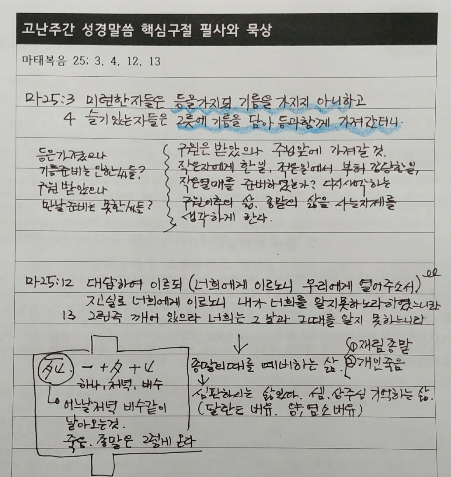 미련한 다섯명처럼 말고 슬기로운 다섯명처럼 되라.