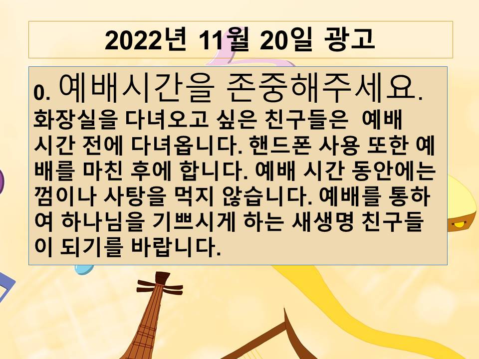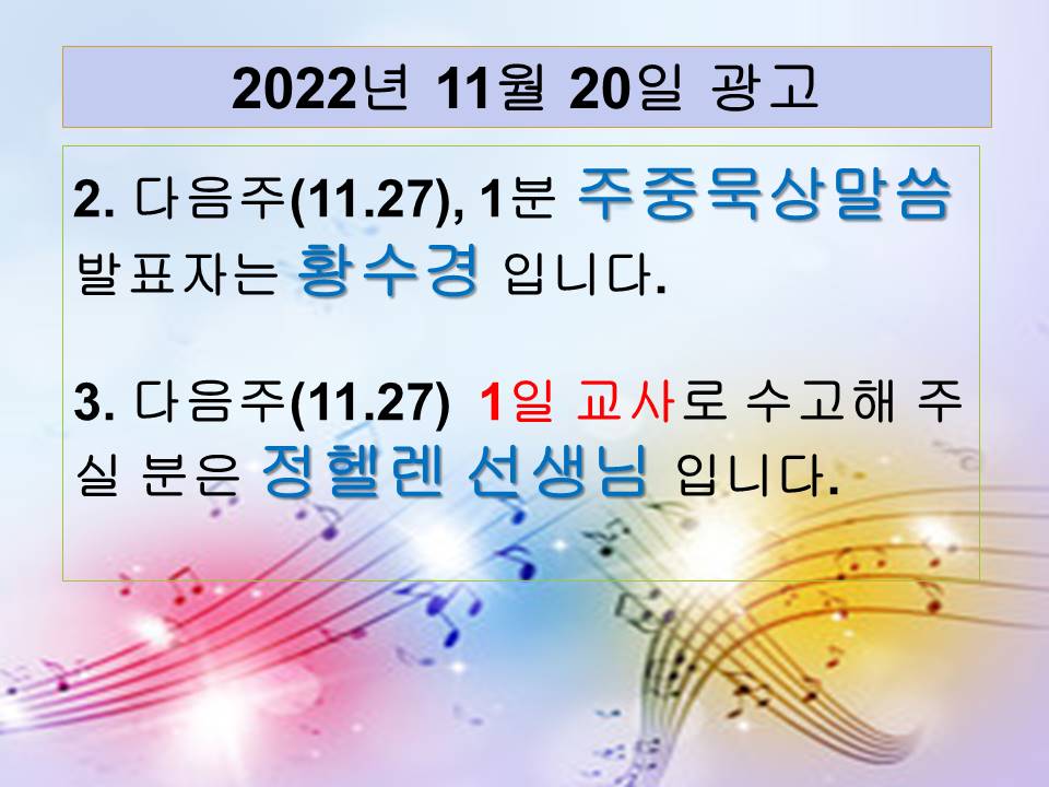 - 다음글 20221113 교회학교 광고 및 하나님말씀 22.11.23