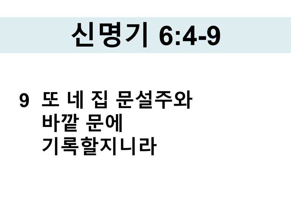 9 또 네 집 문설주와 바깥 문에 기록할지니라