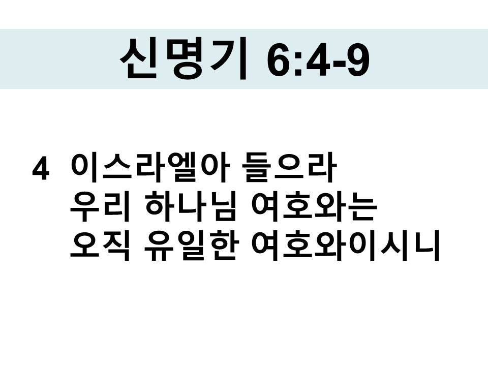 4 이스라엘아 들으라 우리 하나님 여호와는 오직 유일한 여호와이시니