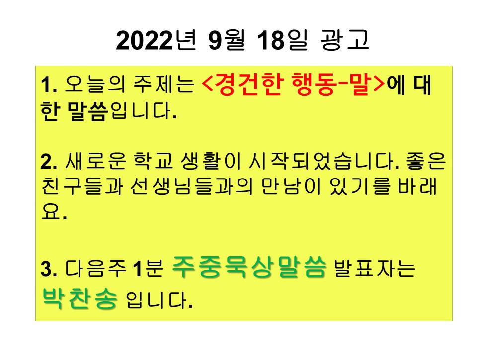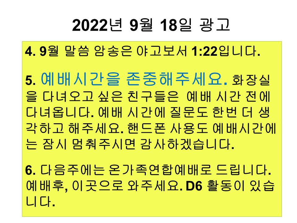 20220918 교회학교 광고 및 하나님말씀
