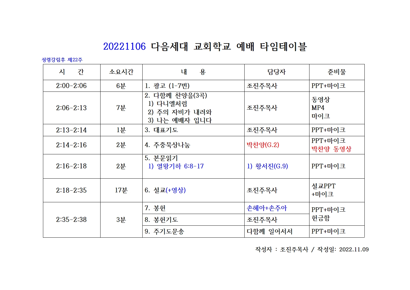 - 다음글 20221030 교회학교 광고 (온가족연합예배) 22.10.30