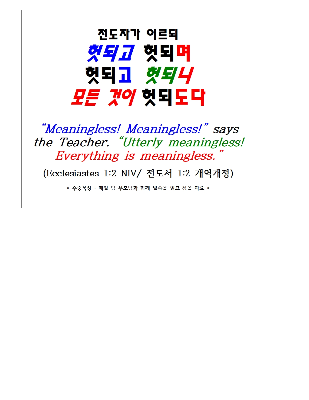 20250302 교회학교 말씀암송 구절 / 전도서 1장 2절