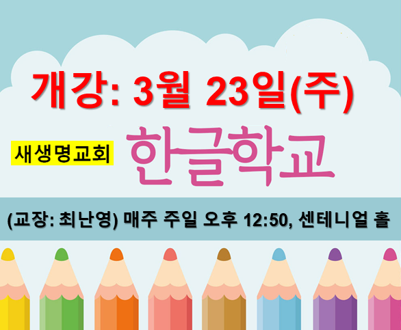 새생명교회 한글학교 개강: 2025년 3월 23일(주일) 오후12시 50분