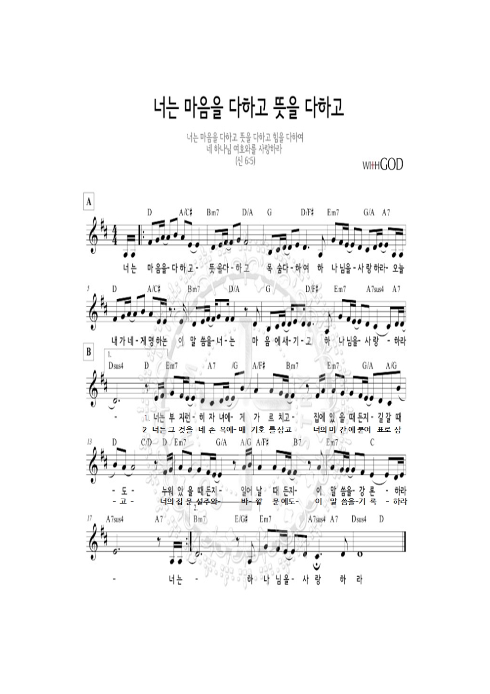 악보: 너는 마음을 다하고 뜻을 다하고(신명기 6:4-9) 찬양 악보