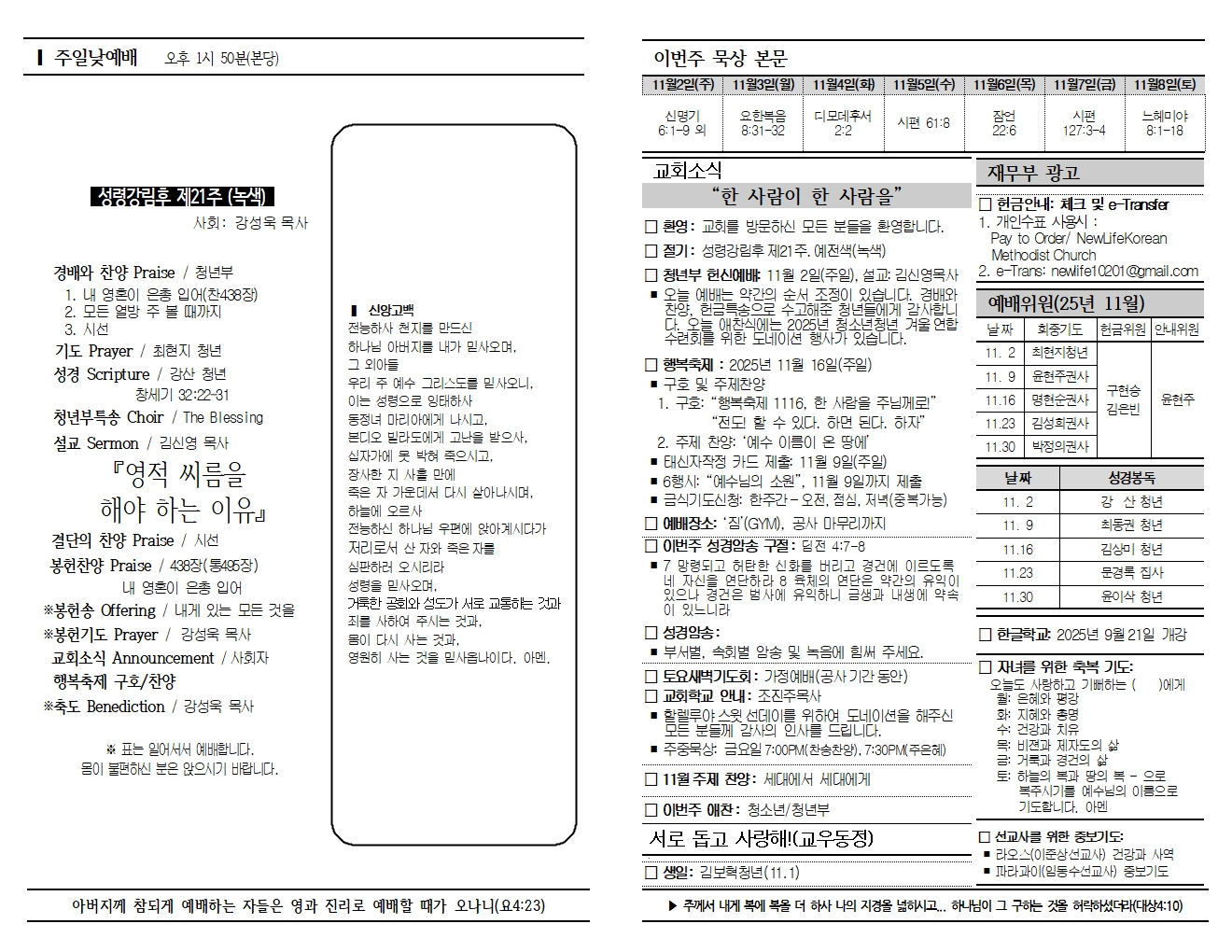20251102 교회소식 및 주보