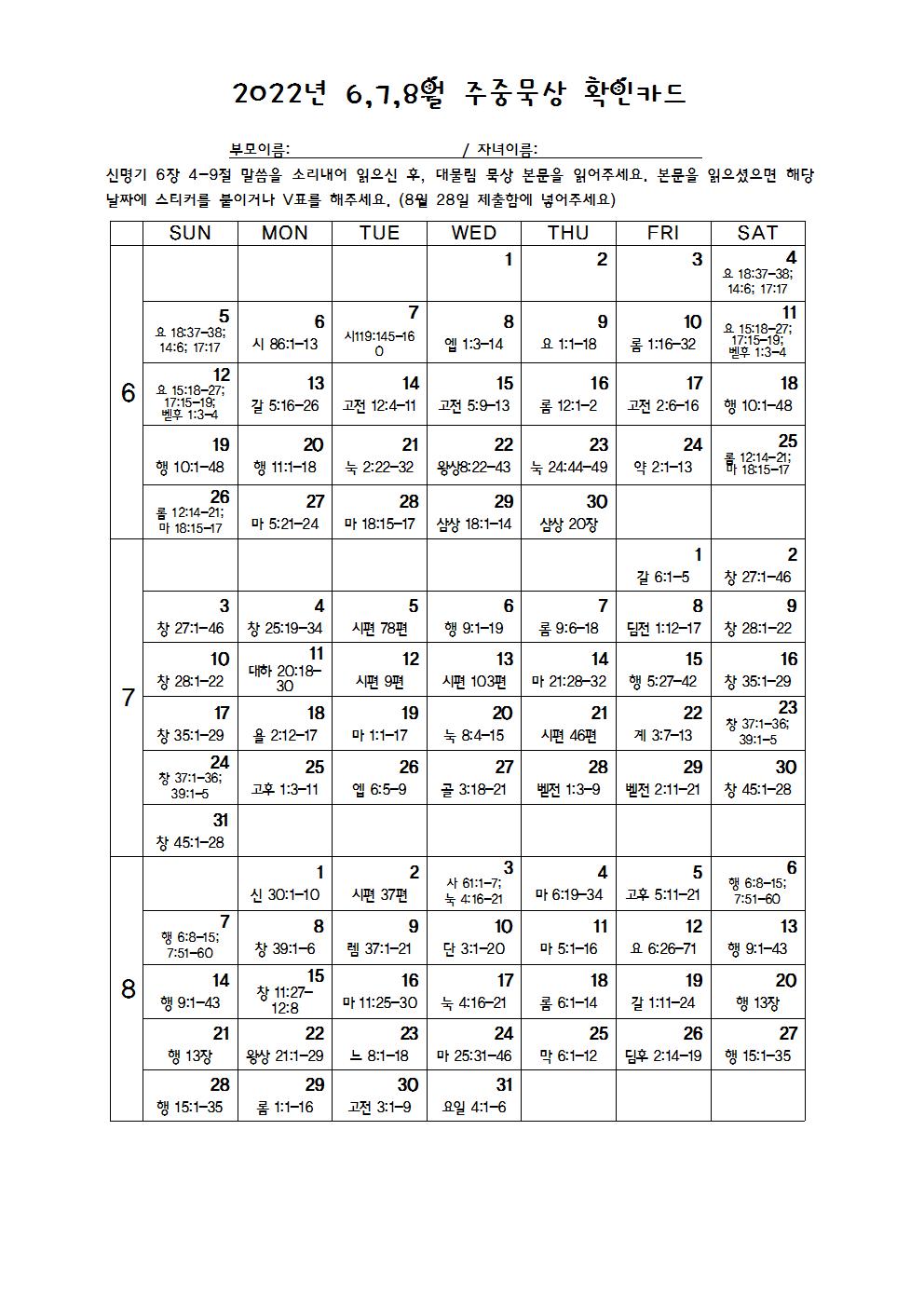 2022년 6.7.8월 주중묵상 확인 카드