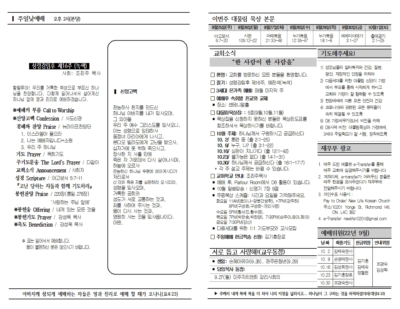 - 다음글 20220918 교회소식 및 주보 22.09.17
