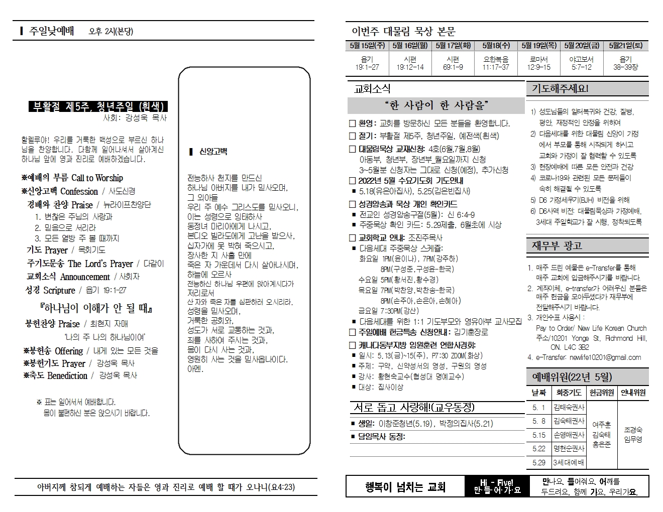20220515 교회소식 및 주보