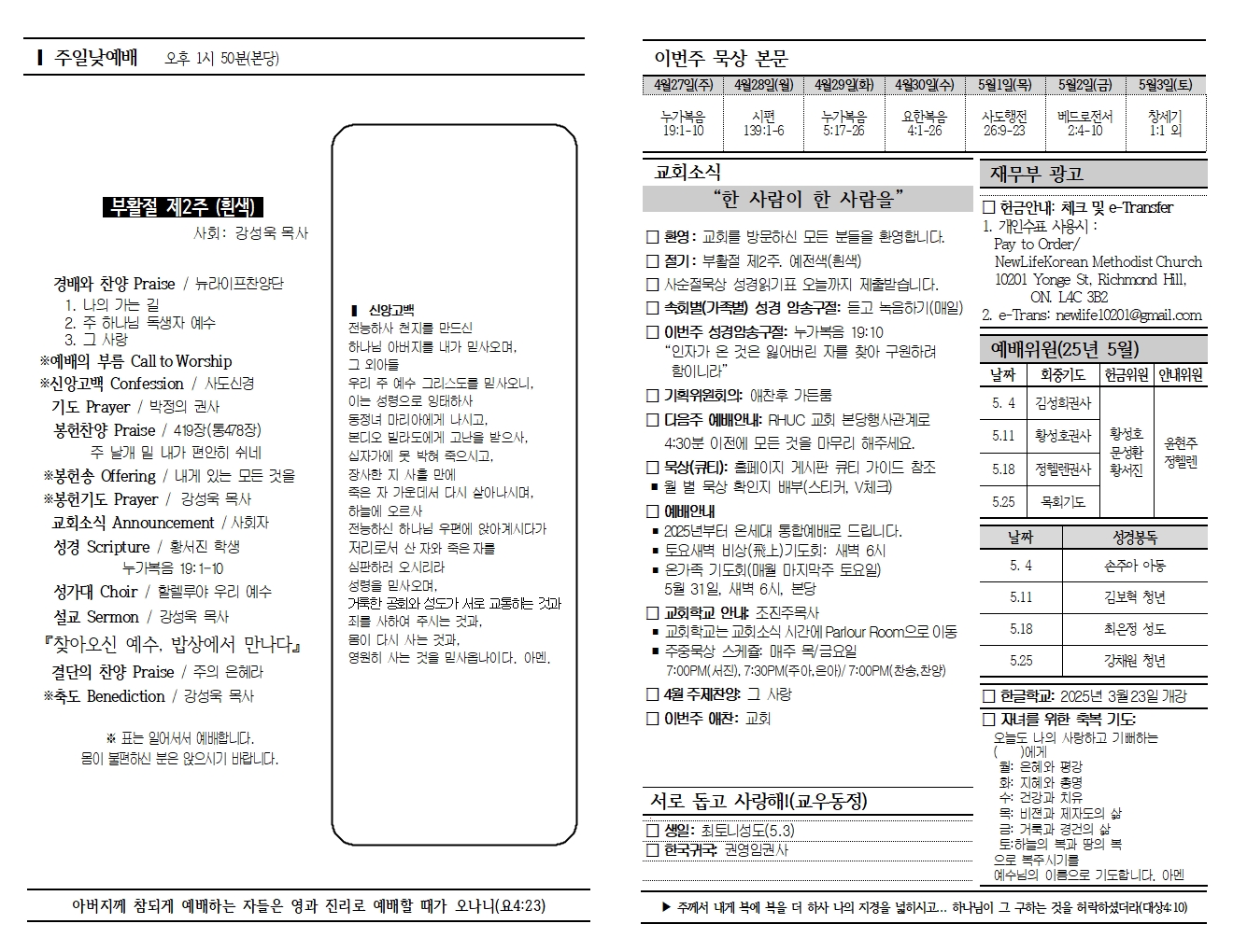 20250427 교회소식 및 주보