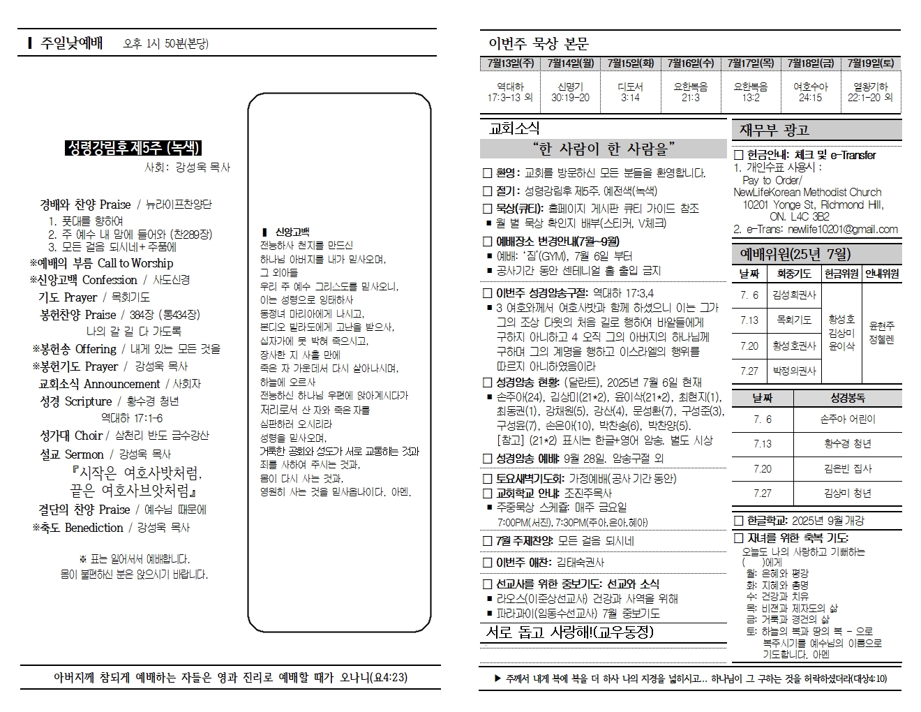 20250713 교회소식 및 주보