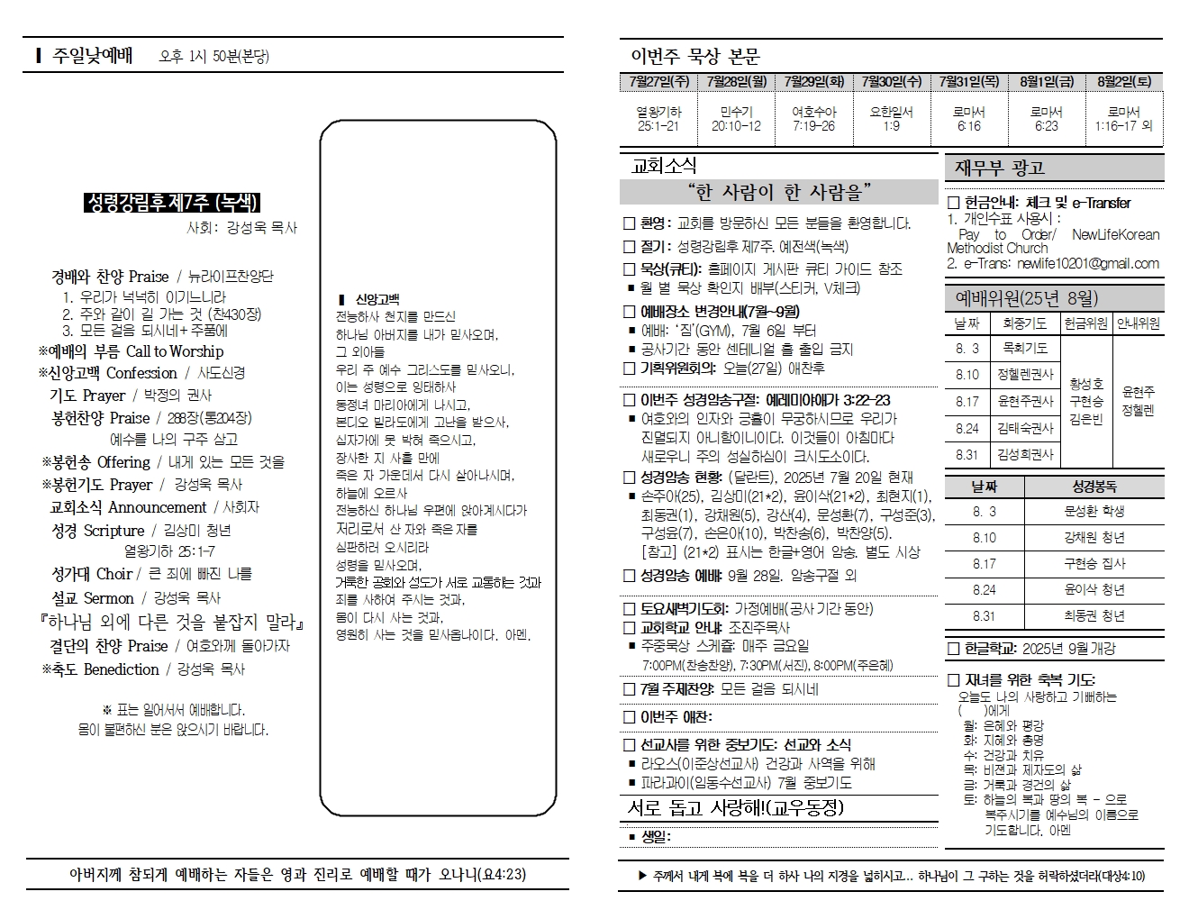 - 다음글 20250720 교회소식 및 주보 25.07.19