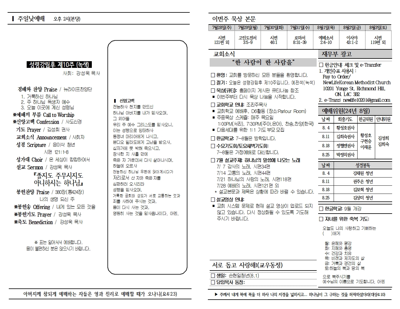 20240728 교회소식 및 주보