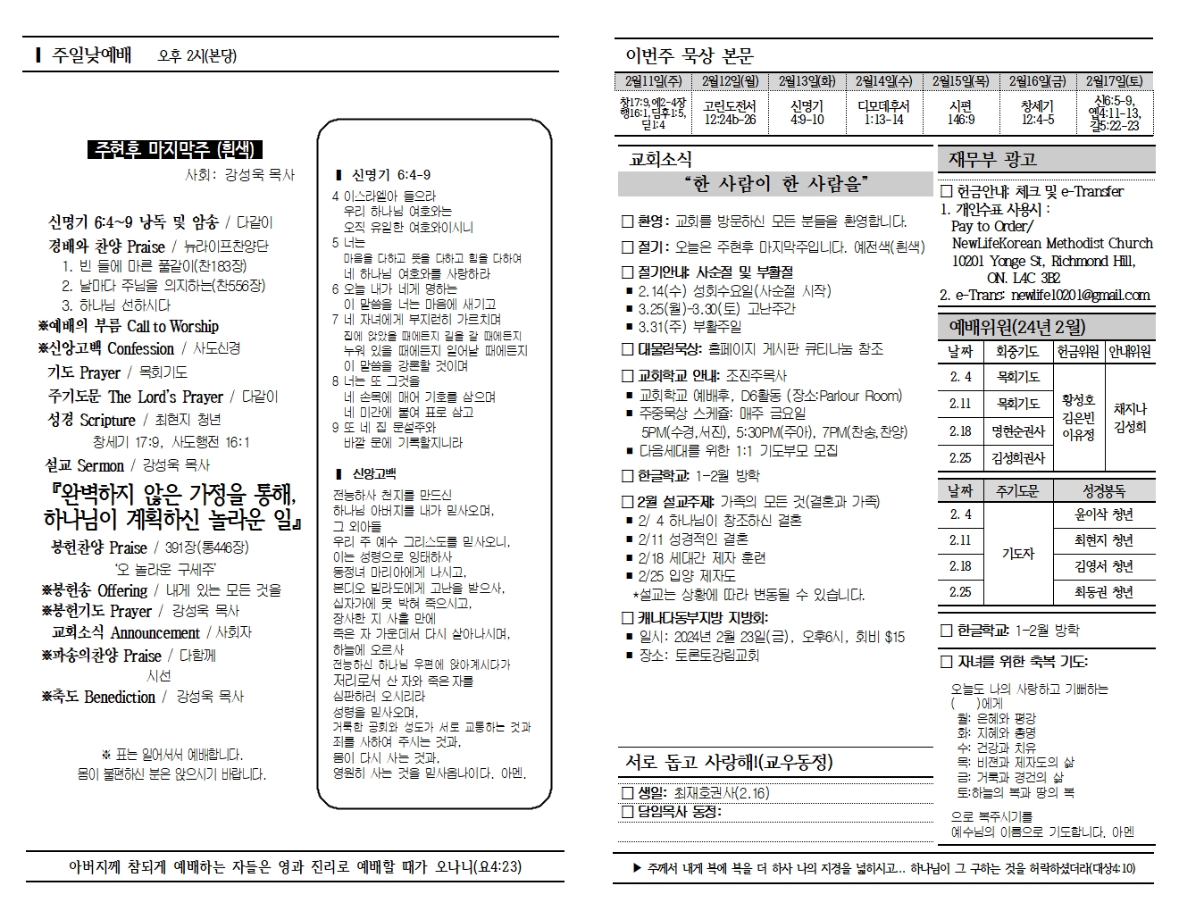 20240211 교회소식 및 주보