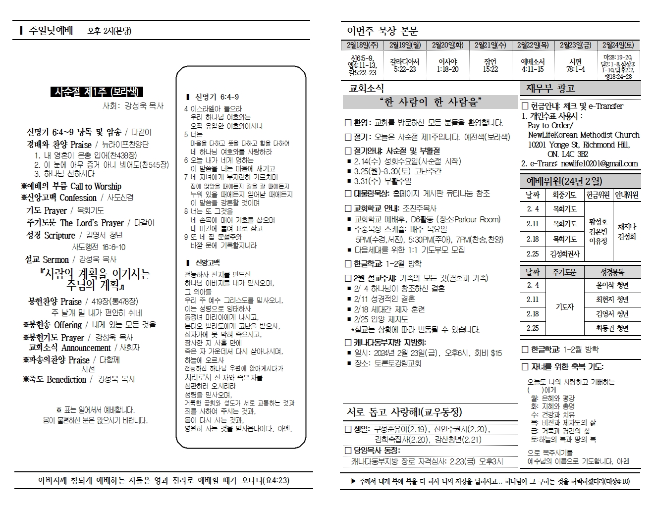 - 다음글 20240211 교회소식 및 주보 24.02.11