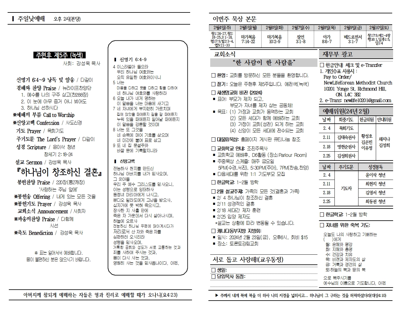 20240204 교회소식 및 주보