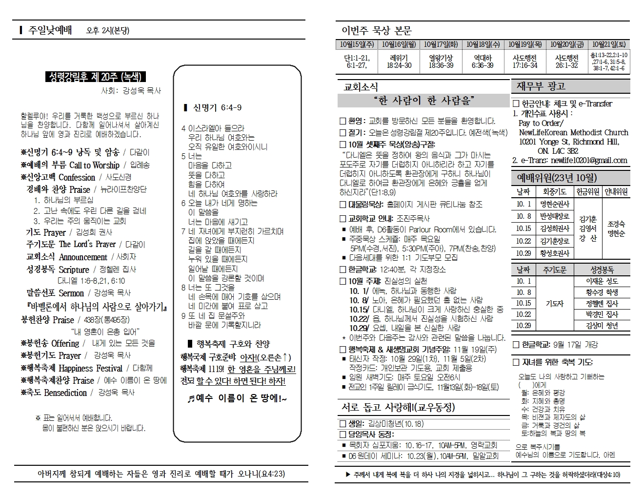 20231015 교회소식 및 주보