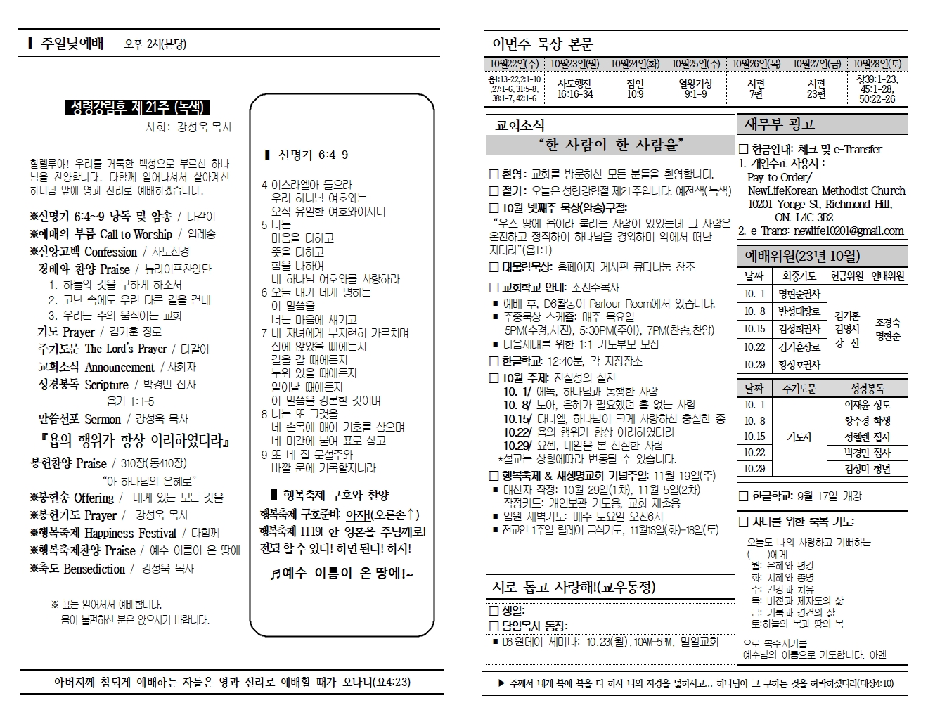 20231022 교회소식 및 주보