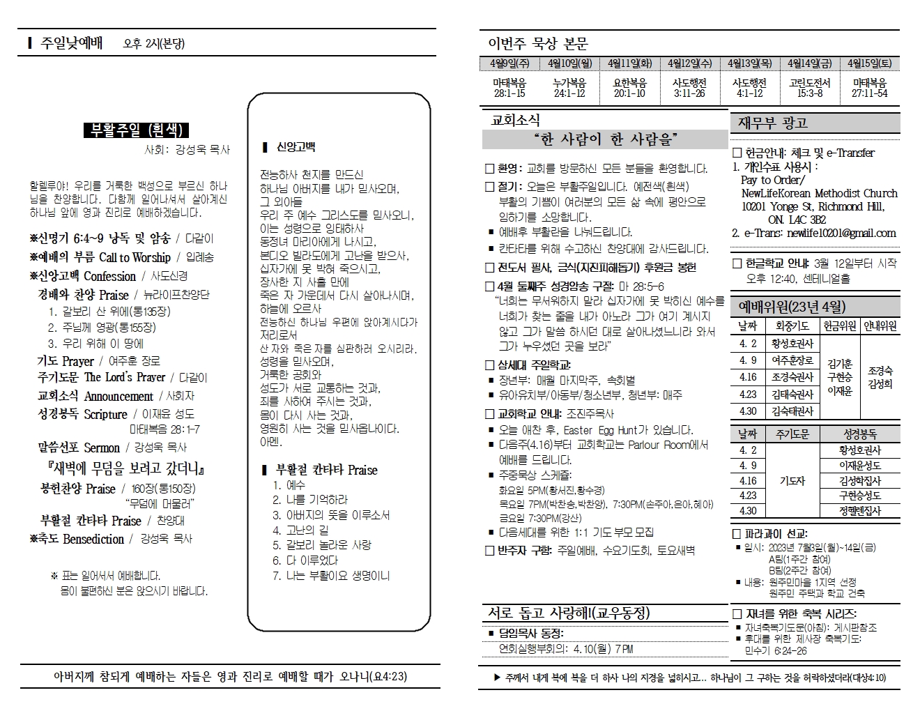 20230409 교회소식 및 주보