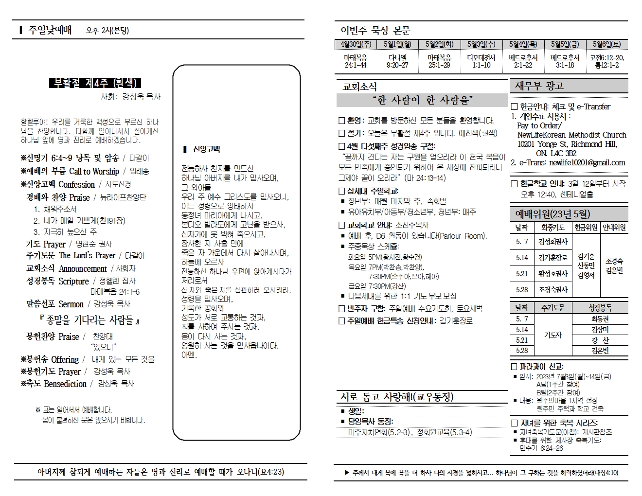20230430 교회소식 및 주보