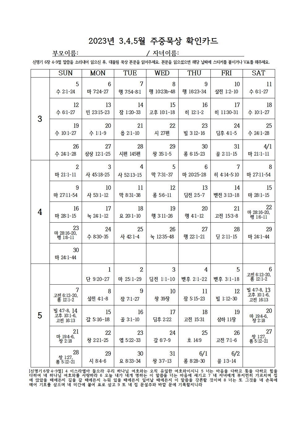 2023년 3,4,5월 주중묵상 확인카드