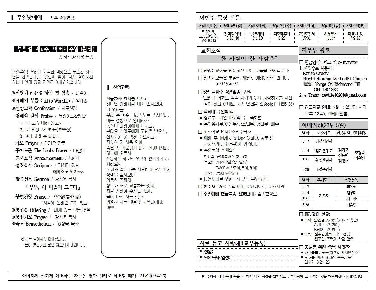 20230514 교회소식 및 주보