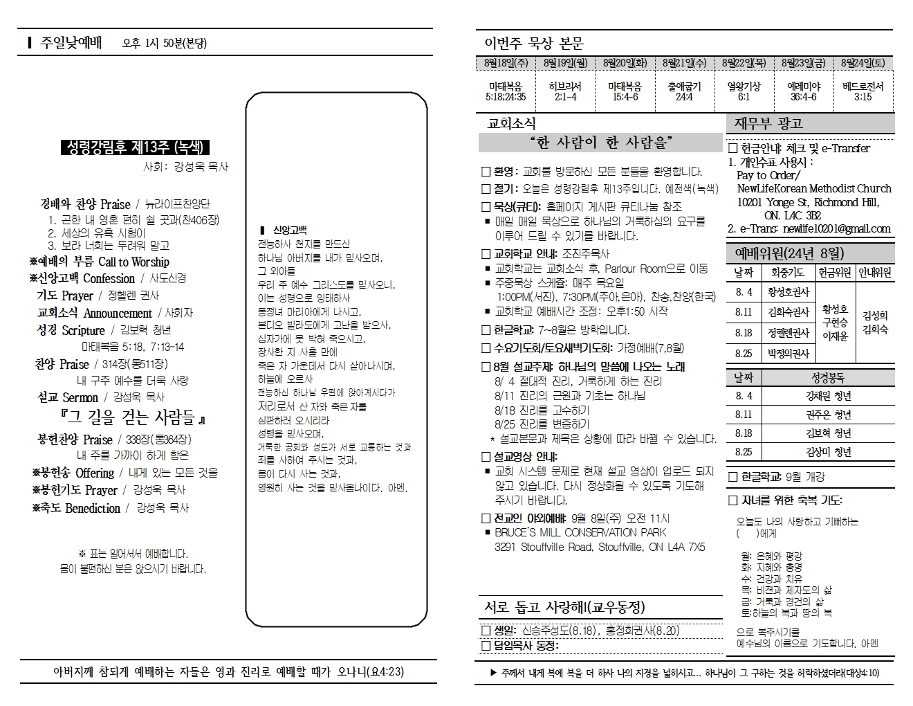 20240818 교회소식 및 주보