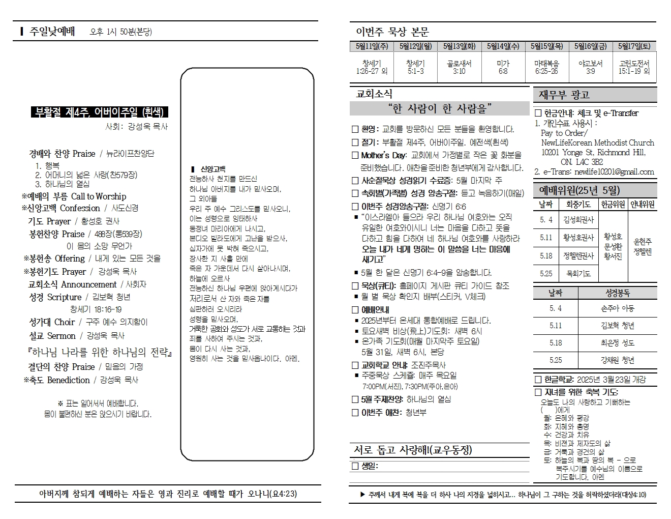 20250511 교회소식 및 주보