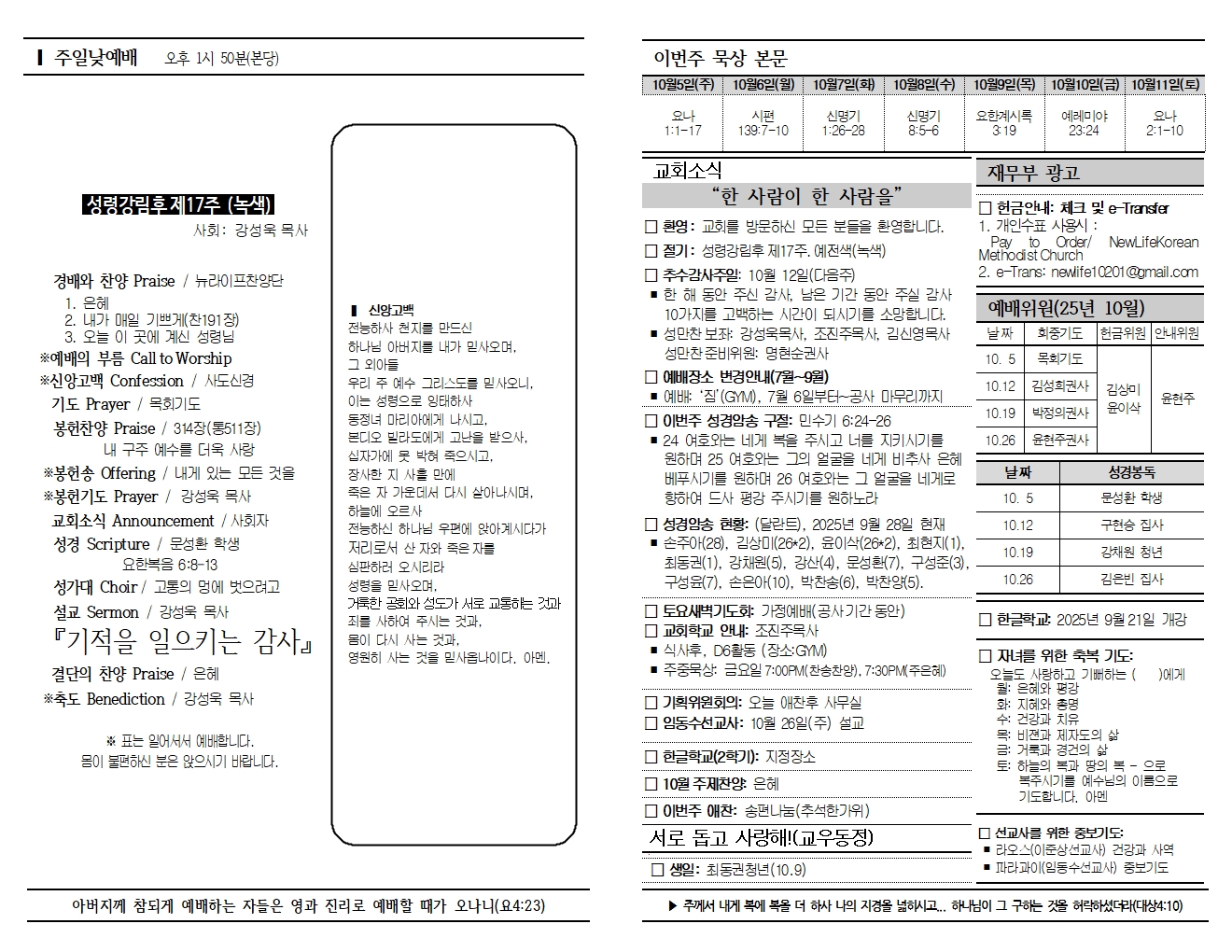 20251005 교회소식 및 주보