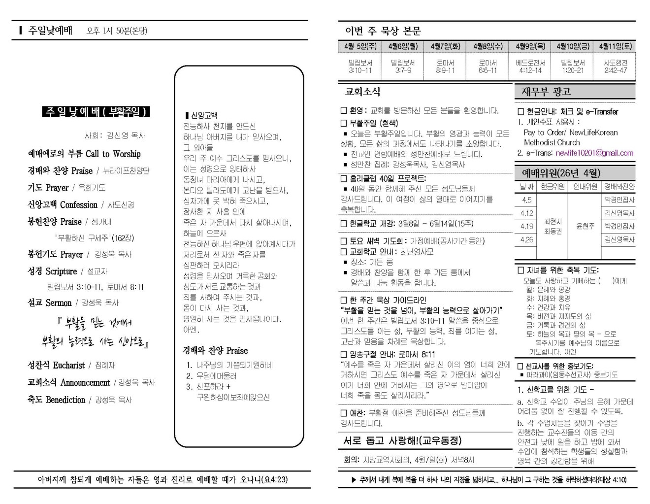2026년 4월 5일 부활주일 교회소식 및 주보