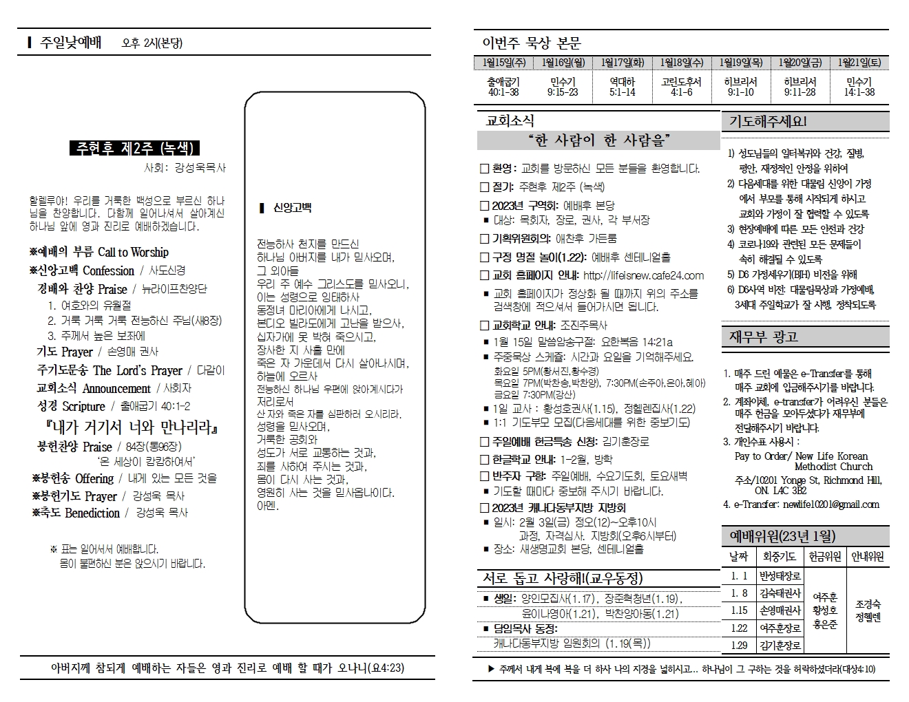 - 이전글 20230122 교회소식 및 주보 23.01.22